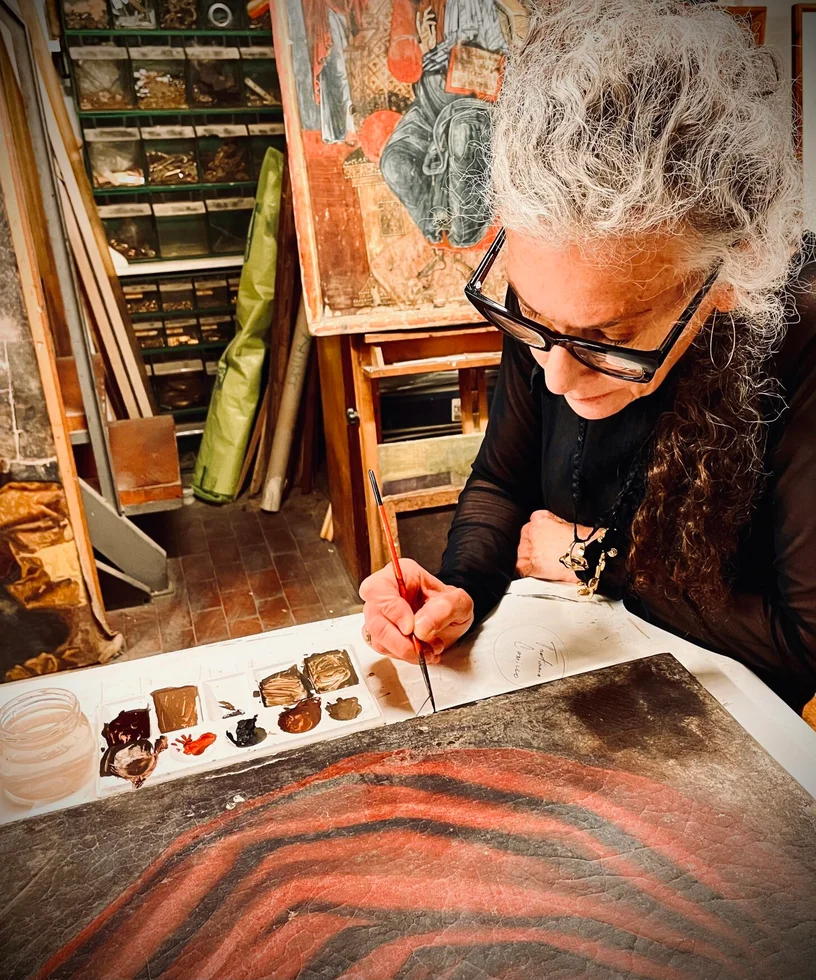 Thereafter Restoration Studio, based in Petaluma, California, is owned and operated by Sharon, a skilled artisan restorer with a deep passion for art history and a strong foundation in heritage conservation. Trained in traditional gilding and painting restoration under masters Stefania and Carlo Martelli at the esteemed Oro e Colore studio in Florence, Sharon brings European quality standards to her work. Her artistic background spans plein air oil painting, botanical illustration, and classical French Atelier drawing, with advanced study at The Ruskin School of Art, Oxford.